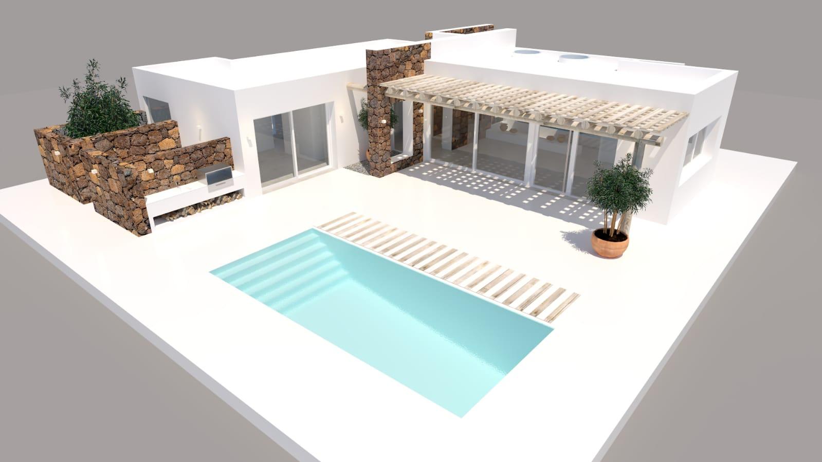 La vivienda se asienta sobre una amplia parcela de 800 m², ofreciendo espacio, tranquilidad y un entorno privilegiado. Diseñada para disfrutar del clima excepcional de Lanzarote durante todo el año, la propiedad cuenta con una elegante piscina privada y amplias zonas exteriores ideales para el relax y el ocio.